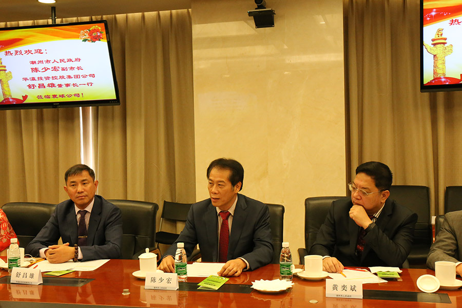 華瀛集團董事長舒昌雄、潮州市饒平縣縣長林文鋒和饒平縣縣委副書記黃奕斌
